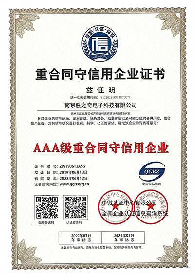 重合同守信用企业证书